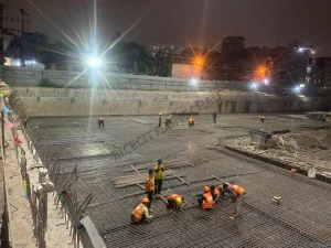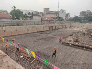 - Đang tiến hành thi công ván khuôn, cốt thép zone 1 và 2 tầng B1 xuyên đêm.